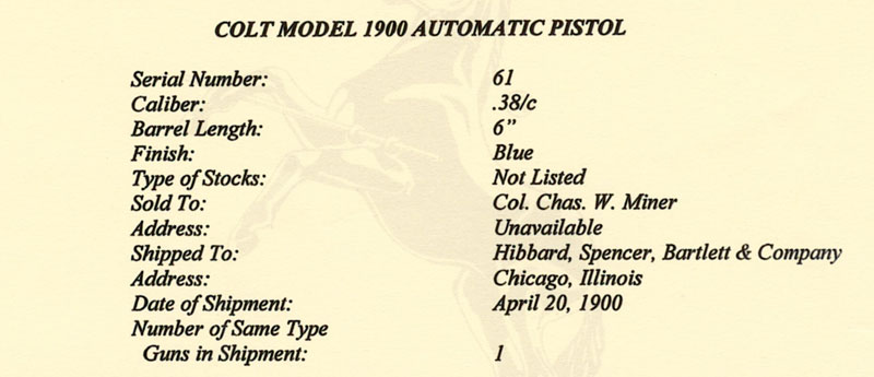 Colt Model 1900 Right Side - "AUTOMATIC COLT"