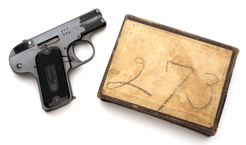 Phoenix Automatic 25 Cal/6.35 Automatic serial number 273 - Manufactured circa 1920 by Robar et DeKerkhove in Liege, Belgium and imported by Phoenix Arms Co. in Lowell, MA. In original box (numbered to the gun) with factory parts sheet stamped PHOENIX MANUFACTURING COMPANY, LOWELL, MASS.