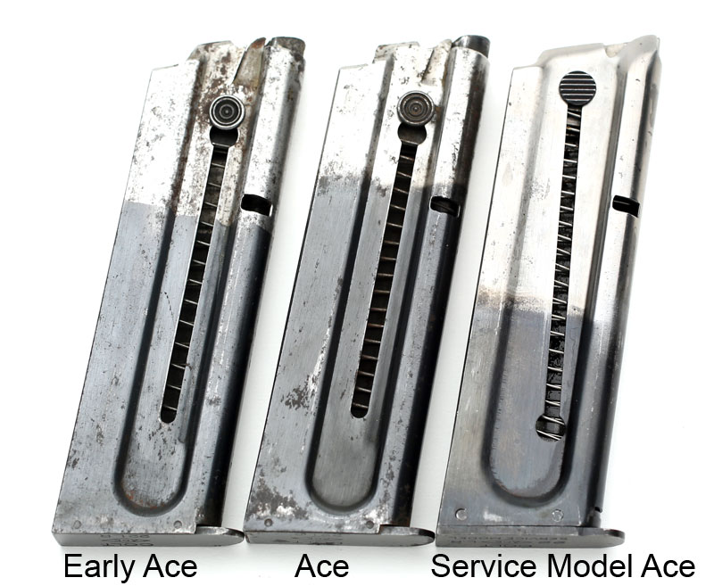 • The follower on the Ace magazine is folded steel and the follower on the Service Model Ace magazine is milled steel.