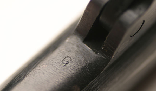 the left lug and a small G "government approval stamp" just forward of the lugs.