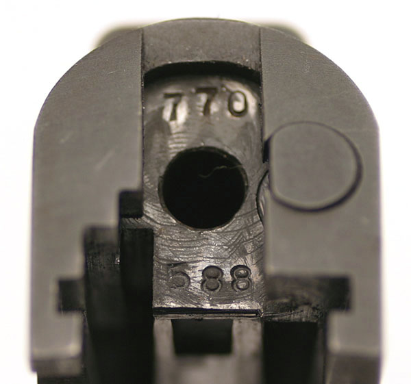 Matching serial number on rear of slide under firing pin