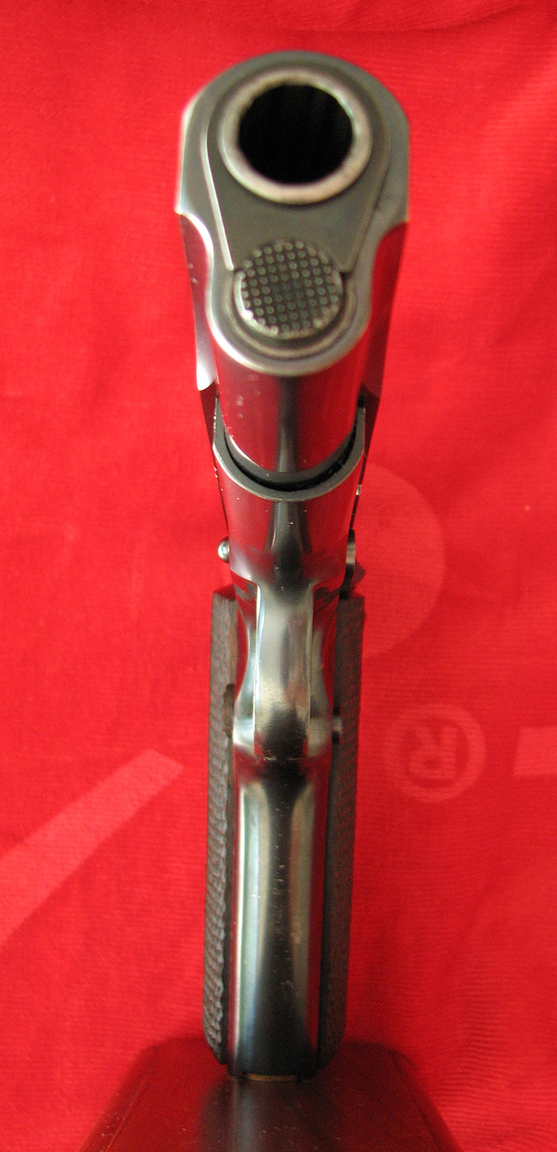 barrel has an “S” in front of the lugs. The magazine is a full blue pin