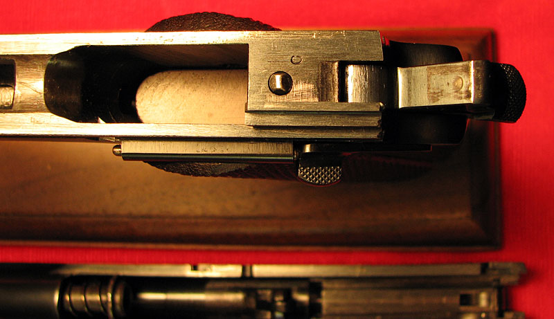 This pistol lacks the Swartz Safety, which despite being serial numbered