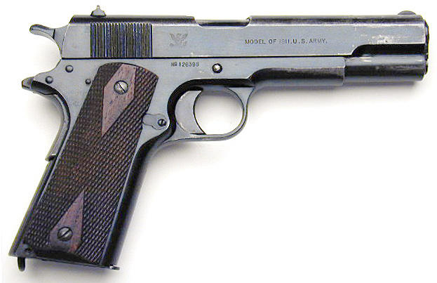 inscription of the Colt Model 1911 -- "MODEL OF 1911 U.S. ARMY." Checkered
