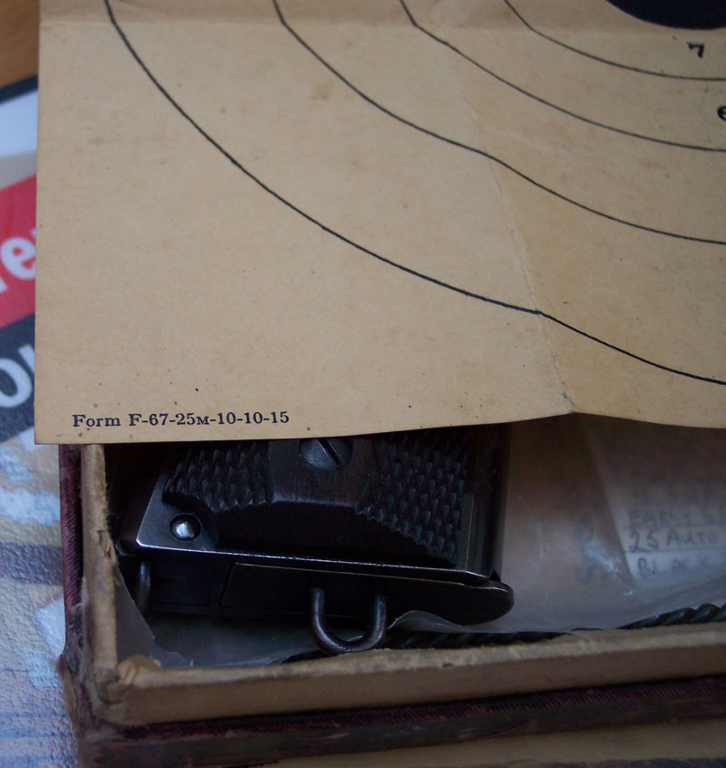 Original box with Government Model instructions, Special Instructions, factory test target and cleaning brush.