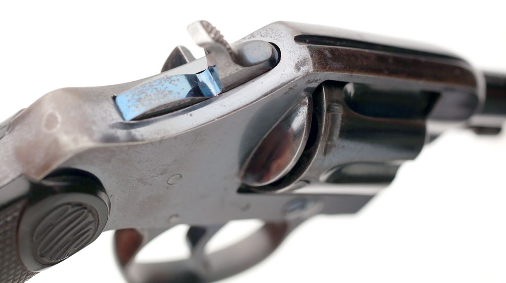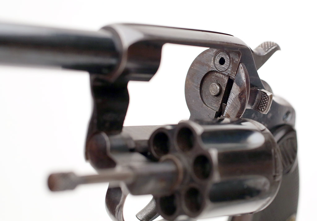 Early Colt Police Positive Serial Number 33384 with 4" barrel - right side.  Front site is standard early rounded type.  The trigger and rear of the hammer are fire blued.