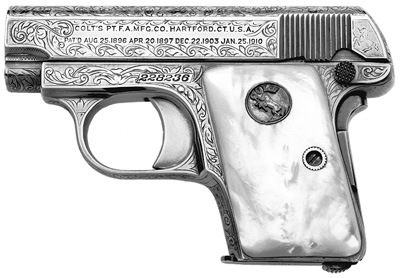 For other factory engraved Colt Vest Pocket pistols by William H. Gough, See: Gun of the Month - December 1998 Gun of the Month - January 2003 Gun of the Month - September 2009 Gun of the Month - January 2010