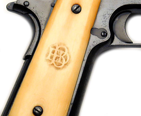 This is the first Government Model listed with ivory grips and is also the first of seven documented examples with factory monogrammed grips.