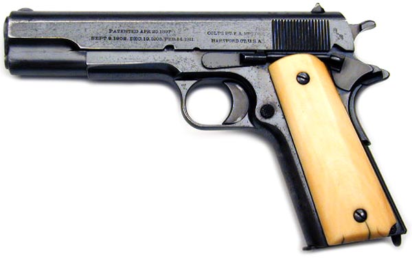 Colt Government Model serial number C3014 with factory monogrammed ivory stocks - right side.