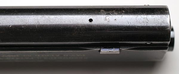 Takedown hole in the underside of the frame -  This hole is present on all Model 1900 pistols and on early Model 1902 Sporting Model Pistols.