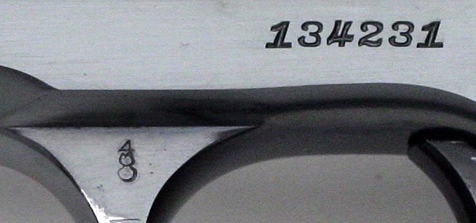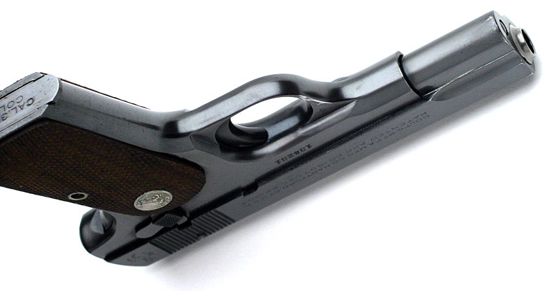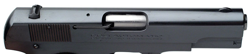 It has the distinguishing characteristic of having a flaming bomb ordnance mark on the upper left flat of the trigger guard.  None of the 105 Blanket Procured pistols have the "U.S. Property" roll mark on the right side of the frame.