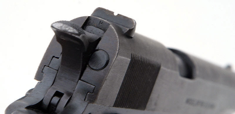 "H" mark on rear of slide, above hammer.