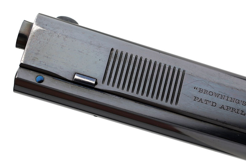 Colt Model 1900 Serial number 4238 retains most of the original finish and shows very little wear.  Most of the original fire blue remains on the face of the trigger.  It's fairly uncommon to find examples of the Colt Model 1900 with this much original finish.