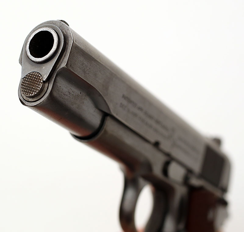 Colt Model 1911A1 .45 ACP serial number 722980 (ca. 1941) - muzzle view,
