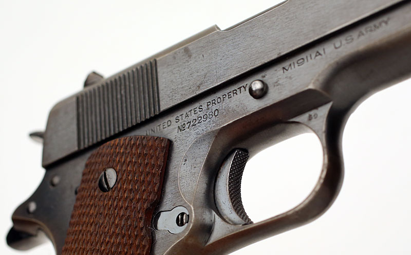 Colt Model 1911A1 .45 ACP serial number 722980 (ca. 1941) - Feed ramp is in the white.