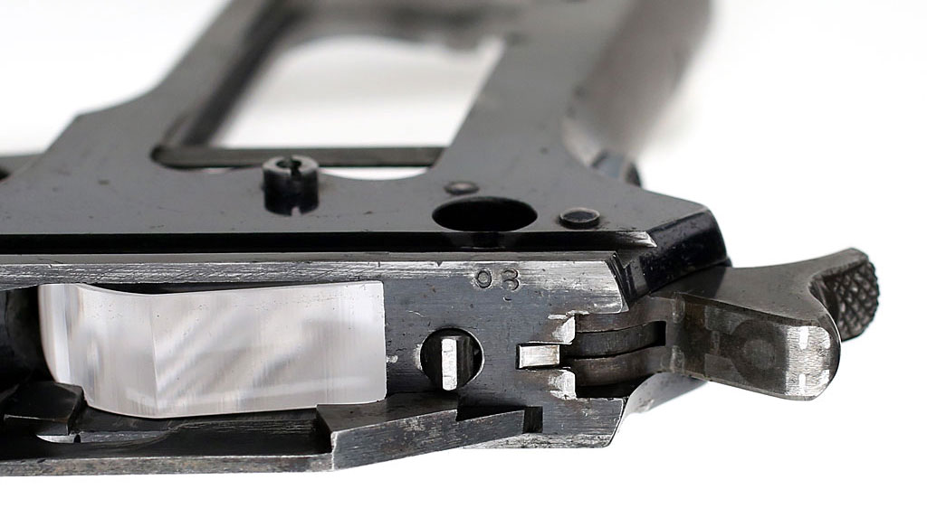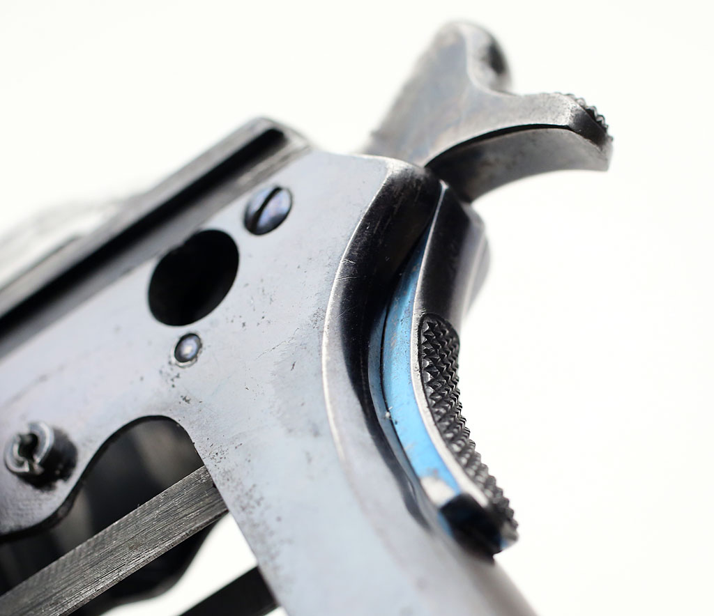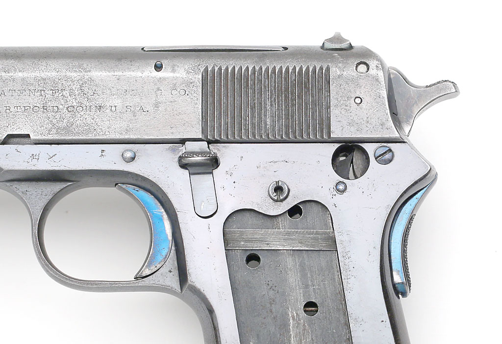 Colt 1907 .45 ACP - First type checkered and fire blued grip safety.  This part was replaced with a later type grip safety on the majority of the M1907 Trials guns at the request of the Army.