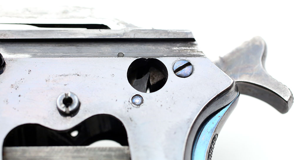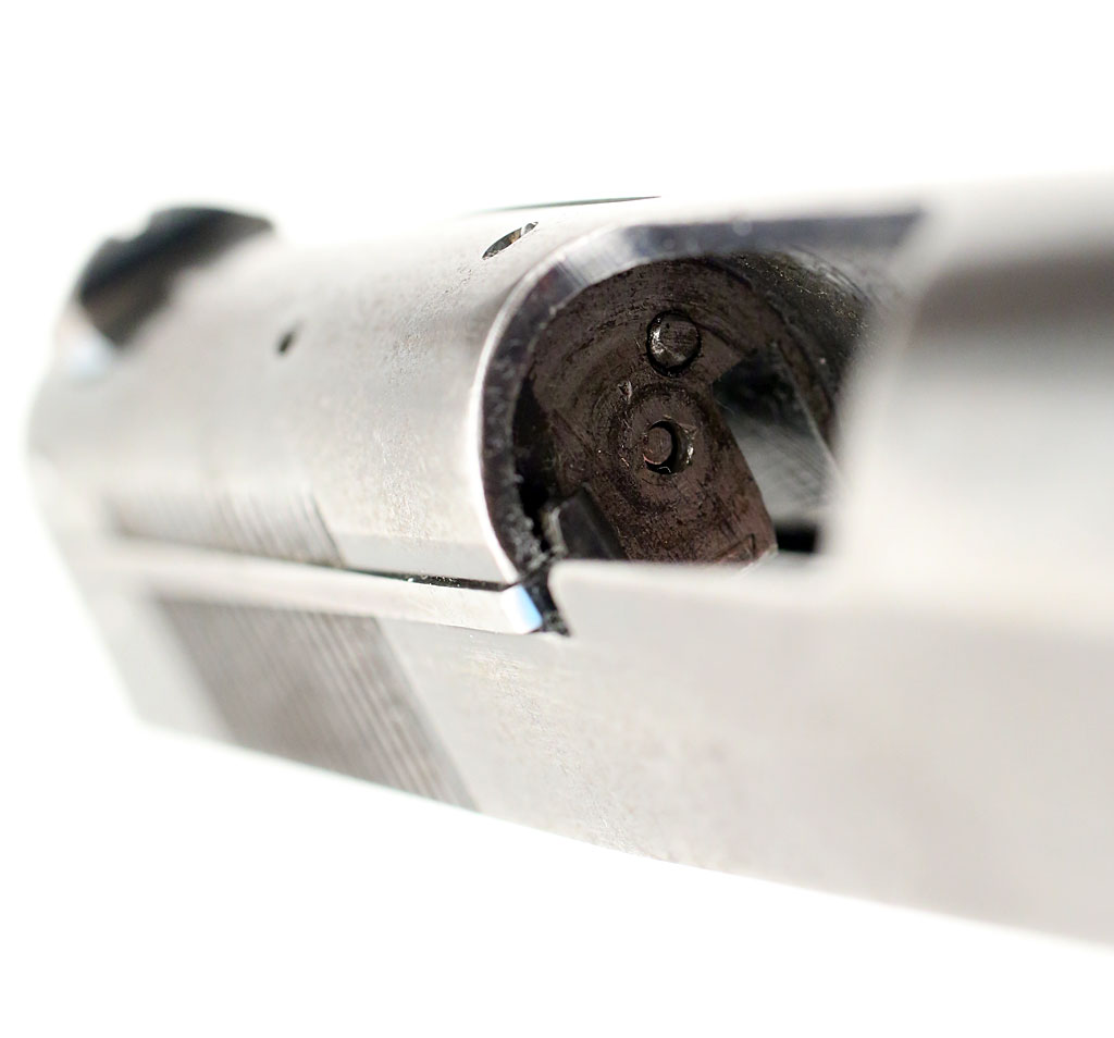 Colt 1907 .45 ACP Auto Loaded Cartridge Indicator - to show that chamber is loaded is located on the left radius of the slide.