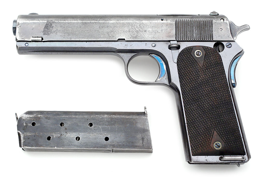 Colt 1907 .45 ACP - Fire blue magazine release.