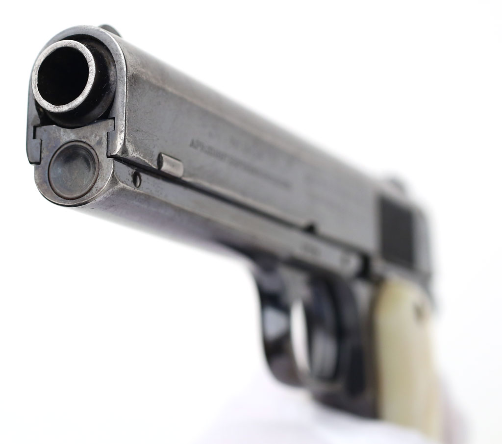 Model 1905 .45 caliber serial number 5706 - muzzle, take down plug and front of slide.