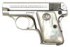 November Colt Model 1908 Vest Pocket .25 ACP - mother of pearl stocks with forward facing flush medallions.