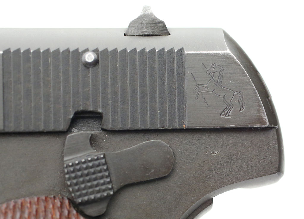Colt Model 1903 Pocket Hammerless .32 ACP serial number 571146 - Close-up of ordnance wheel to the right of the thumb safety.