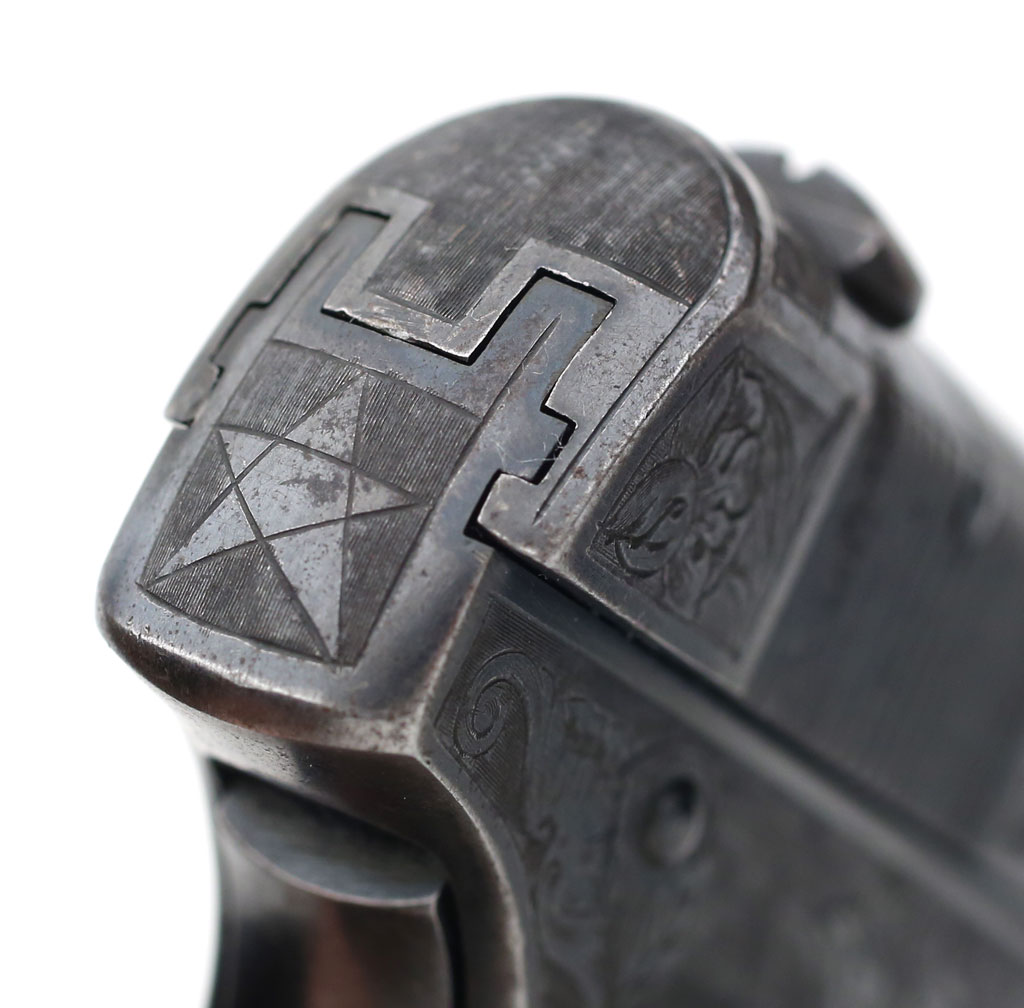 Colt Model 1903 Pocket Hammerless .32 ACP factory master engraved - serial number 293494, factory master engraved by William H. Gough, distinctive five pointed star engraved on rear of frame. This star appears on other known examples of Gough's work.