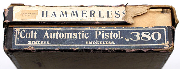 Original box still has original "Ivory" end label in addition to the standard 1908 Colt Pocket hammerless .380 end labels.