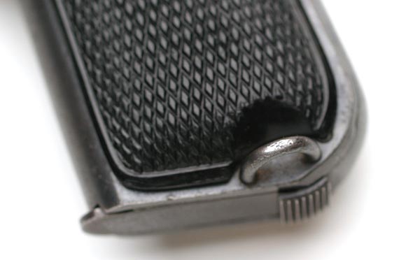 These pistols were fitted with factory lanyard loops on the left side of