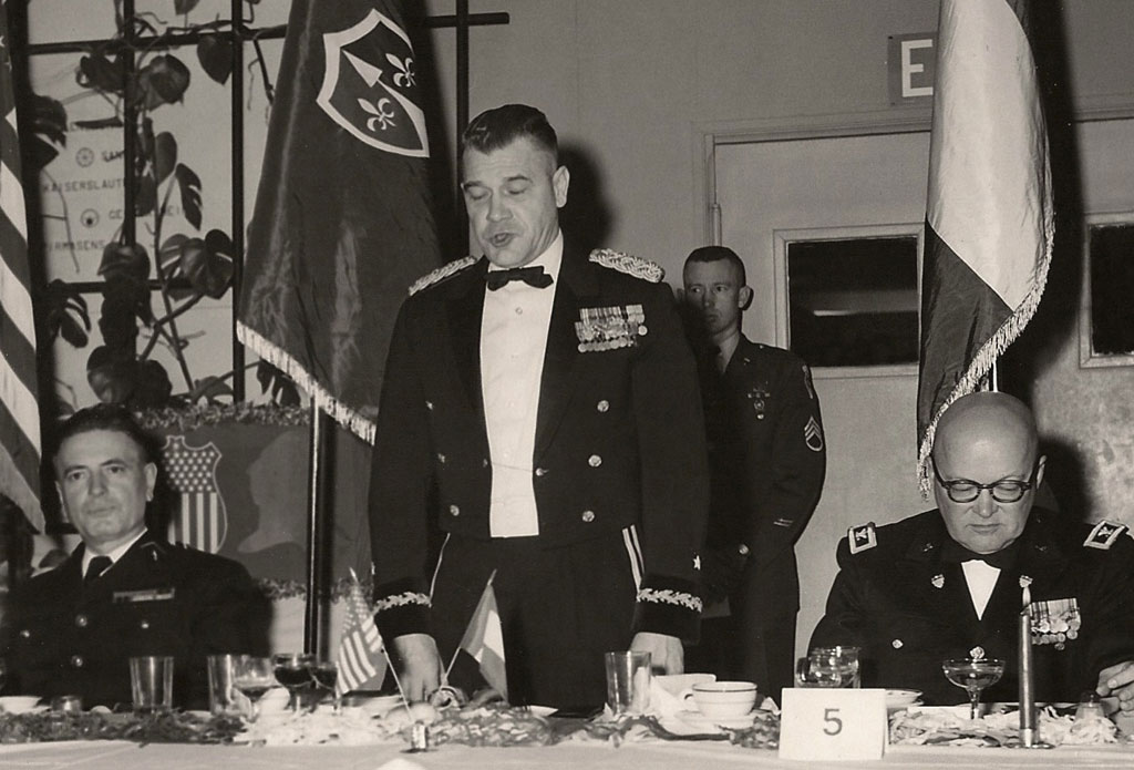 Brig. Gen. Chesarek giving a speech at the 4th Logistical Command "Dining in Night" 20 February 1962.