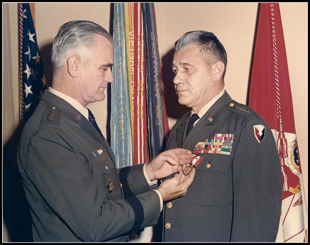 General William Westmoreland presents General Ferdinand Chesarek with his second Distinguished Service Medal (note the oak leaf cluster on the ribbon.)